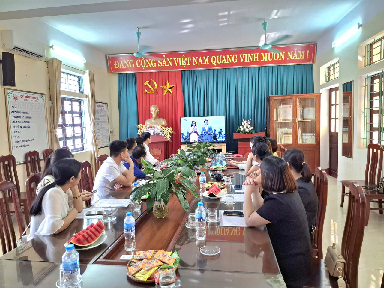 Đại điện cha mẹ HS cùng nhà trường theo dõi Lễ khai giảng trực tuyến toàn quốc