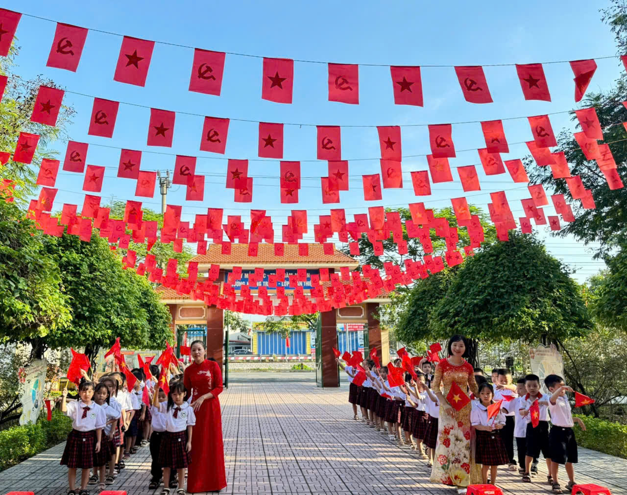 Với tinh thần phấn khởi, tự tin, tại Lễ khai giảng năm học 2025-2026, tập thể cán bộ, giáo viên và học sinh nhà trường đã bày tỏ quyết tâm phát huy những kết quả đạt được, hoàn thành xuất sắc nhiệm vụ năm học, giữ vững thành tích Trường Tiểu học đạt chuẩn Quốc gia mức độ II.